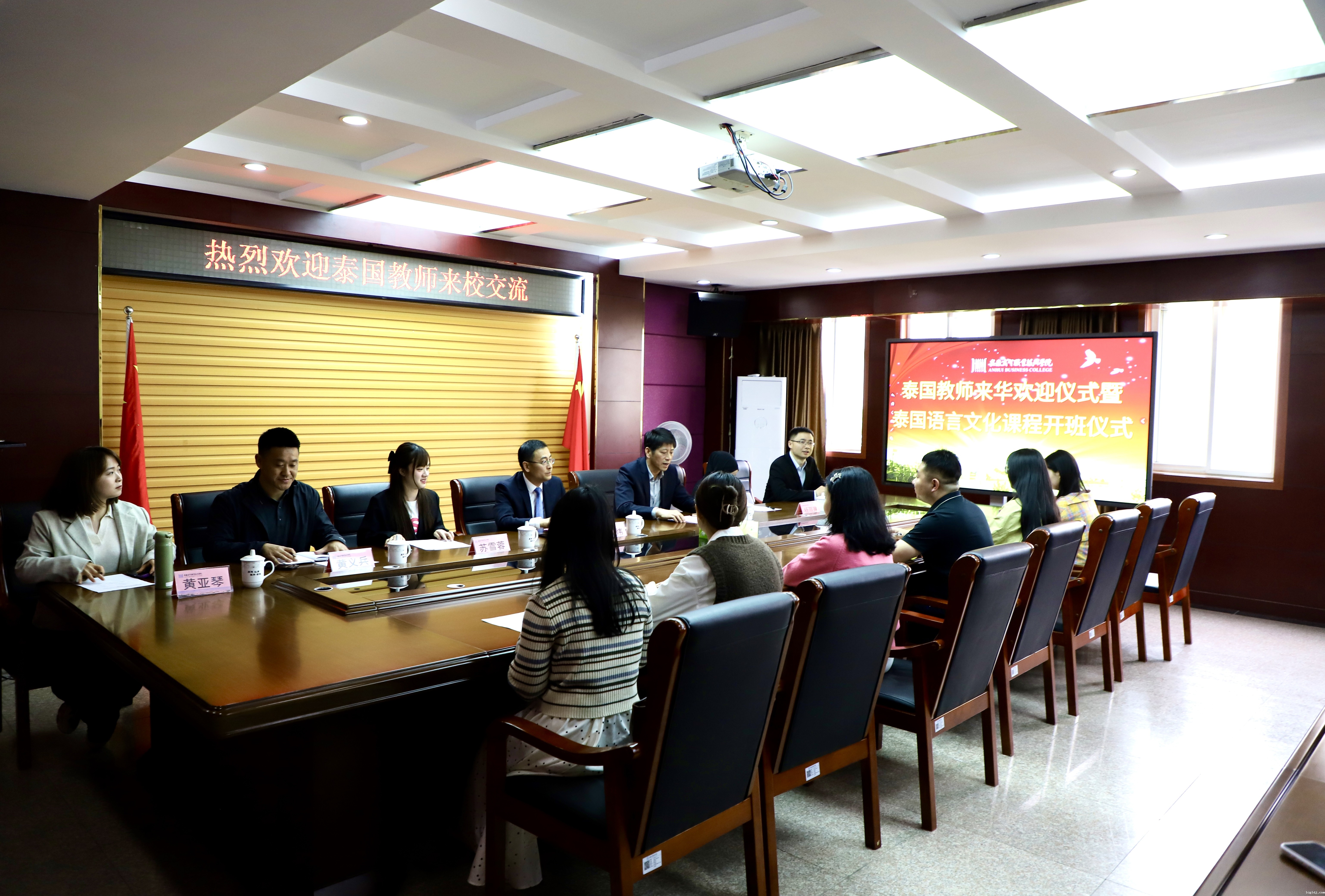 王炜在致辞中代表学校向两位不远千里来华交流的泰国老师表示诚挚欢迎。他回顾了中泰双方密切合作的历程:从短期文化交流到“1+2”学历联合培养项目,从共建“中国语言文化交流中心”到创立“徽匠工坊”海外职教平台,一个个合作项目见证着双方务实合作蓬勃发展。王炜强调,此次泰方教师来华既是落实“师资互派、课程共享”计划的重要内容,更是促进中泰民心相通,促进“一带一路”国家文化互鉴的重要举措。泰方教师在我校开设相关课程将推动双方职业教育合作迈上新台阶,促进学校开放包容的国际化校园建设。最后,他勉励同学们珍惜此次泰国语言文化学习的宝贵机会,多和泰国老师沟通交流,让泰国老师们感受商贸大家庭的温暖热情。
