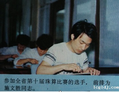 施文胜同志的珠算技术之所以能取得优异成绩,首先是对珠算技术的酷爱,无论是在学校。还是毕业后,都把打算盘当作一种快乐、一种享受,打算盘对他来讲可是说是上了瘾,有空闲时间就拨弄算珠。