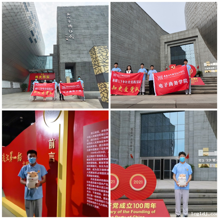 为扎实推动党史学习教育深入开展,促进青年学生深刻领悟党走过百年奋斗路的波澜壮阔、体会党即将启航新征程的奋进步伐,7月16日,电子商务学院“知史爱党”队四名学生在辅导员汪宇鹃的带领下,于芜湖市内各红色景点开展为期一周的暑期“三下乡”社会实践活动。