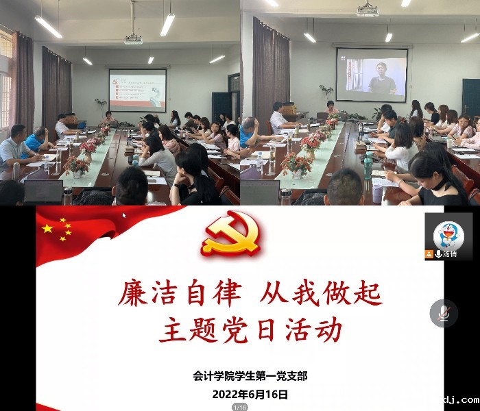 6月15日,会计学院党总支书记王珠强以“涵养廉洁品性,做合格党员”为题为会计学院全体教师上了一堂党课。党课伊始,王珠强领学文章《传承优良作风 奋进复兴征程——2021年以习近平同志为核心的党中央推进作风建设纪实》并共同观看电视专题片《零容忍》。在党课的讲述中,她围绕习近平总书记关于廉洁文化建设的重要论述、《关于加强新时代廉洁文化建设的意见》、高校廉洁文化建设的价值所在、涵养廉洁品性做合格党员四个方面展开,鼓励高校教师党员作为人类灵魂的工程师,不仅需要具备专业学识,还要坚守做人底线,提高整体师德形象,完成新时代教育事业目标任务。6月16日,会计学院学生第一党支部在线上开展“廉洁自律 从我做起”主题党日活动,在此次党日活动中,大家共同学习了习近平总书记关于廉洁文化建设的重要论述和《中国共产党廉洁自律准则》并观看廉洁微电影《那年我们》。学习过后,大家纷纷发表感慨,会计205班的艾佳慧说:“作为一名新加入党组织的预备党员,这是我第一次参加党日活动,我很激动参与廉洁话题的讨论,廉洁不仅是对我们党员的要求,对社会每个群体而言都是必不可少的底线。”会计学院党总支副书记、副院长鲁学生作总结发言,指出廉洁的三重重要意义分别为廉洁是自我提升修养的需要、是单位对员工的纪律要求、是社会对每一个公民的法律要求。