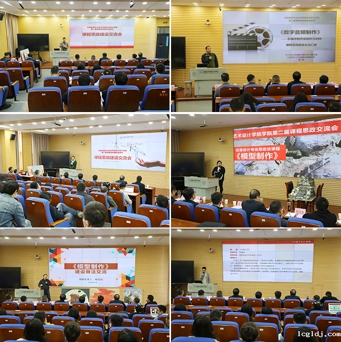 交流活动中,艺术设计学院党总支书记韩飚率先登台,就《数字音频制作》课程的思政设计作了全面介绍,并例举了部分章节的课堂教学实例,分享了自己对课程思政建设工作的思考;数字媒体技术教研室赵宁老师以《矢量图形制作》课程为例,分享了设计类软件操作课程落细、落新、落专课程思政的切入点与融合路径;数字创意教研室主任朱文突出《模型制作》(动漫模型)课程的设计选题及动手环节的思政元素,介绍了该课程蕴含的思政理念和课程思政融入的途径;景观与建筑装饰教研室专业负责人程志永老师紧扣《模型制作》(半立体浮雕模型)课程中半立体浮雕作品的制作技艺,介绍了该课程如何将制作技术上的技能要求提升为思想和学习中的逐“光”要求;视觉传达教研室教师王茵雪详细展示了《印刷工艺》课程的思政元素融入及具体做法,呈现了该课程显著的育人理念。