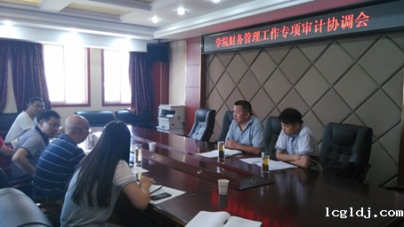 日前,学院召开2011-2014年财务管理工作专项审计协调会议。总会计师王炜、监察审计处处长胡传山、财务处处长马创、委托审计单位安徽庐东会计师事务所负责人崔进主任及财务处各科室相关人员参加会议。会议由王炜主持。