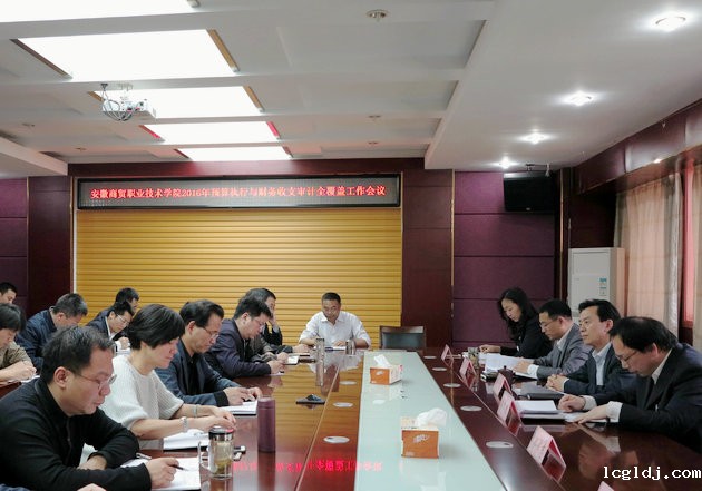 5月4日下午,学校召开2016年度预算执行与财务收支审计全覆盖工作会议。在校的学校领导、受托审计单位--安徽新中天会计事务所有限公司董事长李红政、审计部副主任杨晶以及学校各部门主要负责人参加了会议。学校总会计师王炜主持会议。