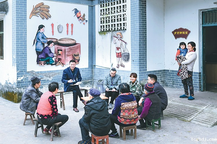 重庆市巴南区纪委监委创新方式推进家风助廉行动,让经典家风家训、优秀传统文化深入人心。图为日前,该区南彭街道纪工委干部到塔落村走访并开展听家风家训、讲家规家德故事活动。 邓箭 摄