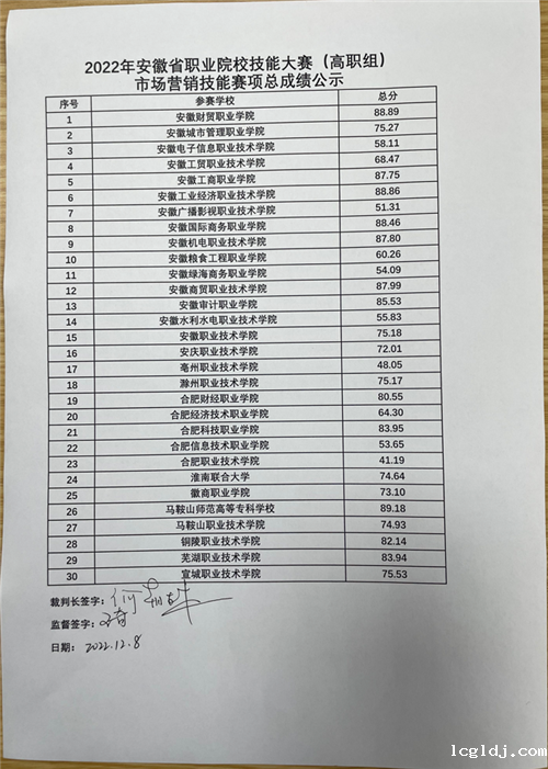 我院承办的2022年安徽省职业院校技能大赛市场营销技能赛项于2022年12月8日结束,现将比赛成绩予以公示。