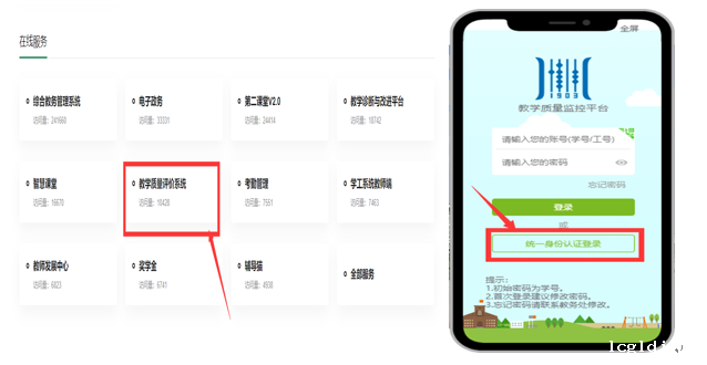 登录学校数字BETVlCTOR手机登录后,在在线服务选择进入“教学质量评价系统”,点击统一身份认证登录,进入评教系统,具体评价操作见第3点。