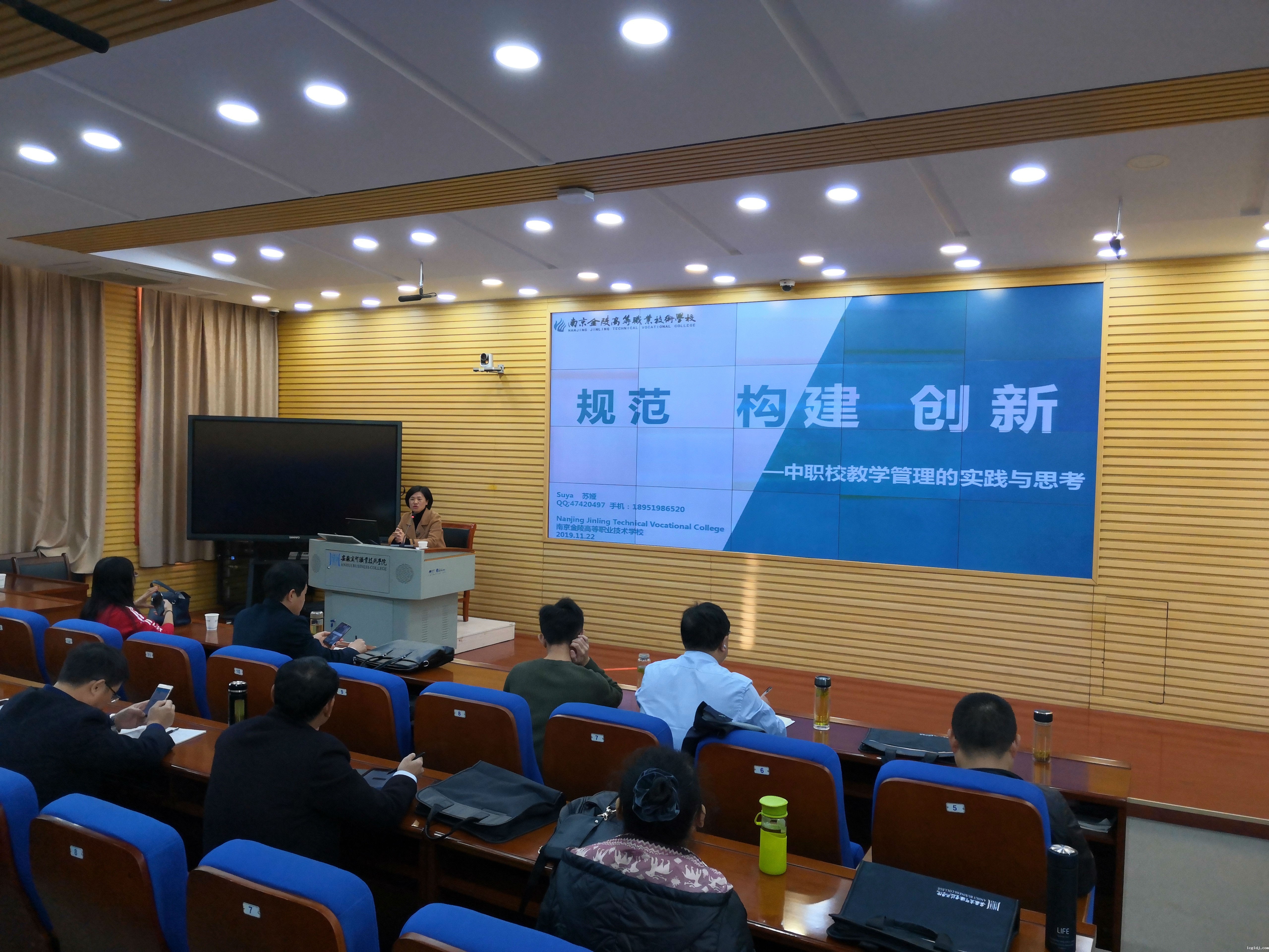 11月22日,南京金陵中等专业学校教学副校长苏娅就“规范、构建、创新—教学管理的实践与思考”主题进行了专题报告。