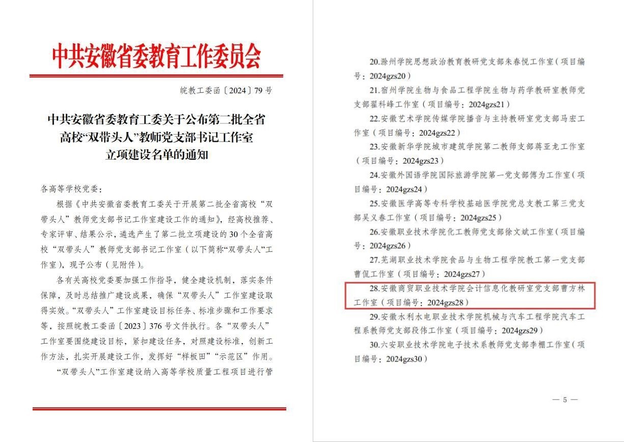 近日,省委教育工委公布了第二批全省高校“双带头人”教师党支部书记工作室立项建设名单,我校会计学院会计信息化教研室党支部曹方林工作室成功入选。