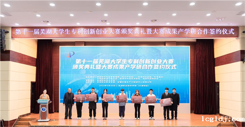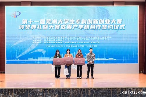 3月30日,第十一届芜湖大学生专利创新创业大赛颁奖典礼暨产学研合作签约仪式在芜湖职业技术学院举行。省市场监督管理局党组成员、副局长,省知识产权局局长程胤,省市场监督管理局知识产权运用促进处一级调研员虞东海,芜湖市政协副主席袁发林,本次大赛各主办单位领导、获奖队伍选手和指导教师代表以及企业方代表等参加典礼仪式。在第十一届芜湖大学生专利创新创业大赛中,我校共获得5项奖项,其中一二三等奖各1项。李阳和魏力老师获得优秀指导教师奖,我校获得组织奖。