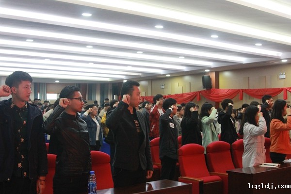 仪式在雄壮的国歌声中正式拉开序幕。团委副书记孙握瑜介绍了本次培训班的基本情况,并强调了培训的目标和意义。会上,来自院学生组织的杨静同学代表全体学员发言,表示“青马工程”培训对于每一位学员都是一次宝贵的学习机会和交流平台,大家应珍惜机会,学有所获。在团员代表孟繁锦同学的带领下,252名学生干部举起右拳,面向团徽,重温入团誓词,整齐嘹亮的宣誓声响彻整个会场。整个开班典礼各环节紧凑有序、庄严隆重。会场秩序井然,学员精神振奋,备受鼓舞。
