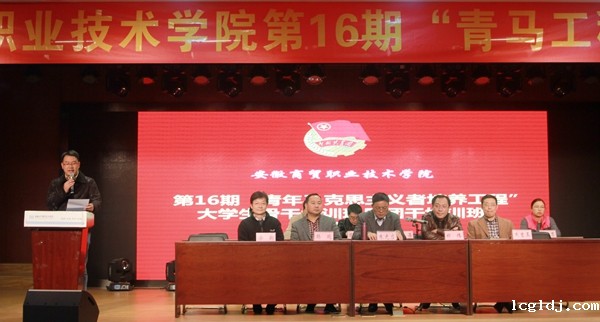 为加强团的自身建设,不断提高学生骨干的理论水平和工作能力,在广大团员青年中弘扬社会主义核心价值观,进一步学习习近平总书记系列重要讲话精神,11月17日下午,学院举办了第16期青马工程培训班开班典礼。院党委副书记、纪委书记朱光应,相关部门负责人、各系部党团书记以及全体学员参加了仪式。