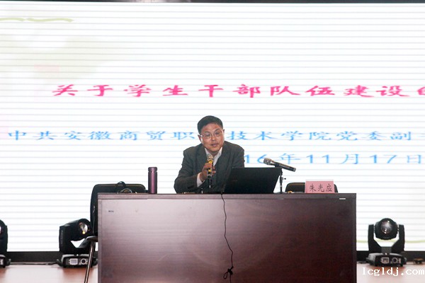 仪式结束后,朱光应作了题为《关于学生干部队伍建设的若干思考》的讲座。他阐明了学生干部内涵以及角色定位、学生干部应具备的基本素质及能力,分析了我院学生干部队伍的现状,指明了成为优秀的学生干部的途径。同学们表示,讲座脉络清晰,深入浅出,提高了自己的思想认识和工作责任感,令自己深受启发、受益匪浅。