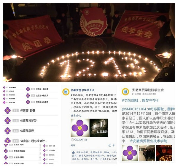 此外,院学生会全体成员利用微博、空间等平台积极发布、转发参与南京大屠杀死难同胞祭奠活动;统一更换签名,更换头像为和平之花“紫金草”,表达自己内心对革命先烈的缅怀和感恩之情。短短4个小时内,就有超过1500余名师生参与了微博、空间平台发布互动,在全院掀起了一股爱国主义教育热潮。