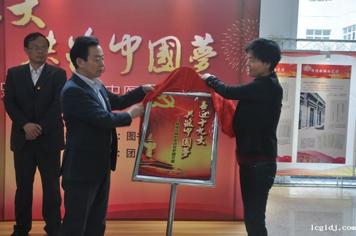 党委副书记、院长李忠和图书馆馆长季学芳共同为本次图文展揭牌。
