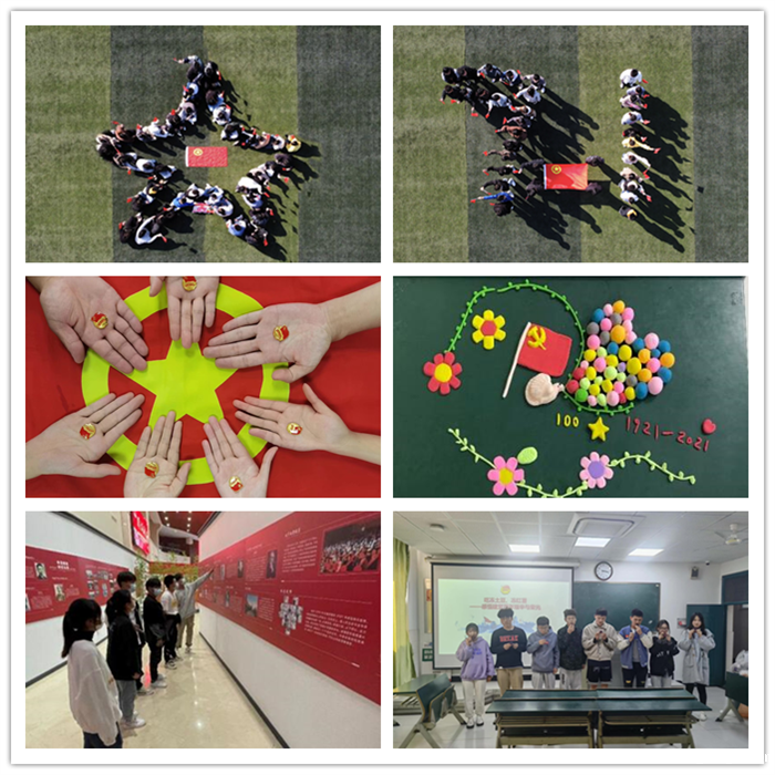 活动前期,为营造举国共庆百年华诞、齐心协力开创新局的浓厚氛围,学校组织各班团组织发挥创意,以主题创作的形式庆祝建党百年。同学们利用课余时间,制作出一份份饱含爱党爱国情感的黑板报、手抄报作品。此外,各班团组织还通过“红心向党铸辉煌”快闪、我与团旗合影等活动,以视频、图片形式记录青春印象,献礼建党百年。一批富有创意的快闪视频及照片充分展示了我校青年团员一心向党,朝气蓬勃的青春风貌。