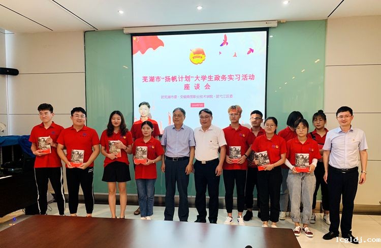 以知促行,知行合一。为了使大学生更好的感知社会、服务社会,在实践中养成知行合一、理论联系实际的踏实作风,今年暑假,学校选派5人参加“扬帆计划”政务实习活动,另与弋江区团委对接,选派20人开展弋江区基层服务活动。为深入了解大学生政务实习工作情况,梳理工作经验,更好的推动此项工作,近日,校党委副书记、纪委书记朱光应,芜湖团市委书记郝代伟,弋江区区委常委、宣传部长蒋胜等一行看望政务实习学生,并与学生举行座谈。