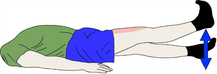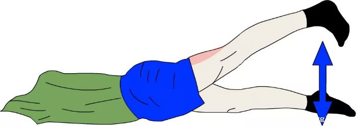 操作:拧紧你的大腿肌肉,慢慢地将受伤的腿从地板上抬起四次。保持腿向上两次计数,然后降低腿四次计数。放松你的大腿肌肉。拧紧大腿,重复。不要向上推臀部; 他们必须一直在地板上。