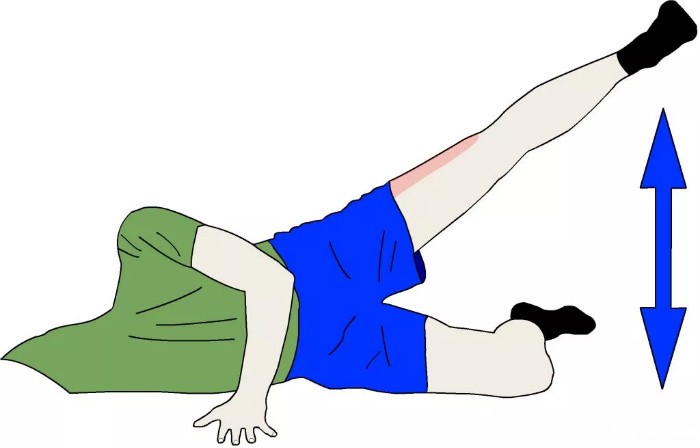 变化动作:一旦腿部力量恢复,应继续膝盖加强练习,借助脚踝重量或使用弹性绷带。