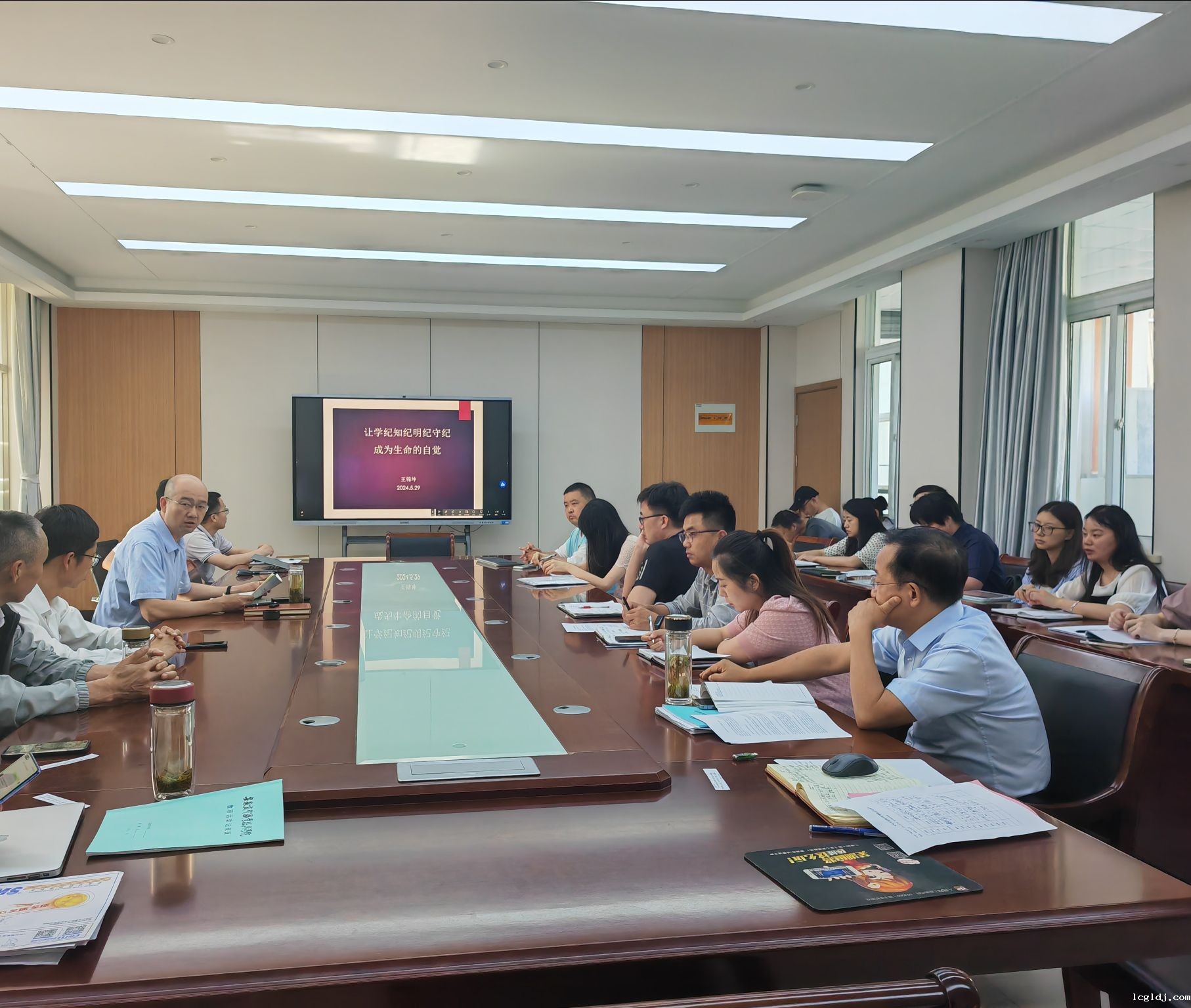 5月29日,文化与法律学院党总支副书记、院长王锦坤为全体党员上党课,题目为《让学纪知纪明纪守纪成为生命的自觉》。