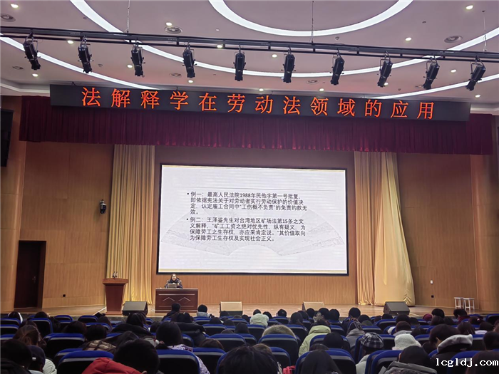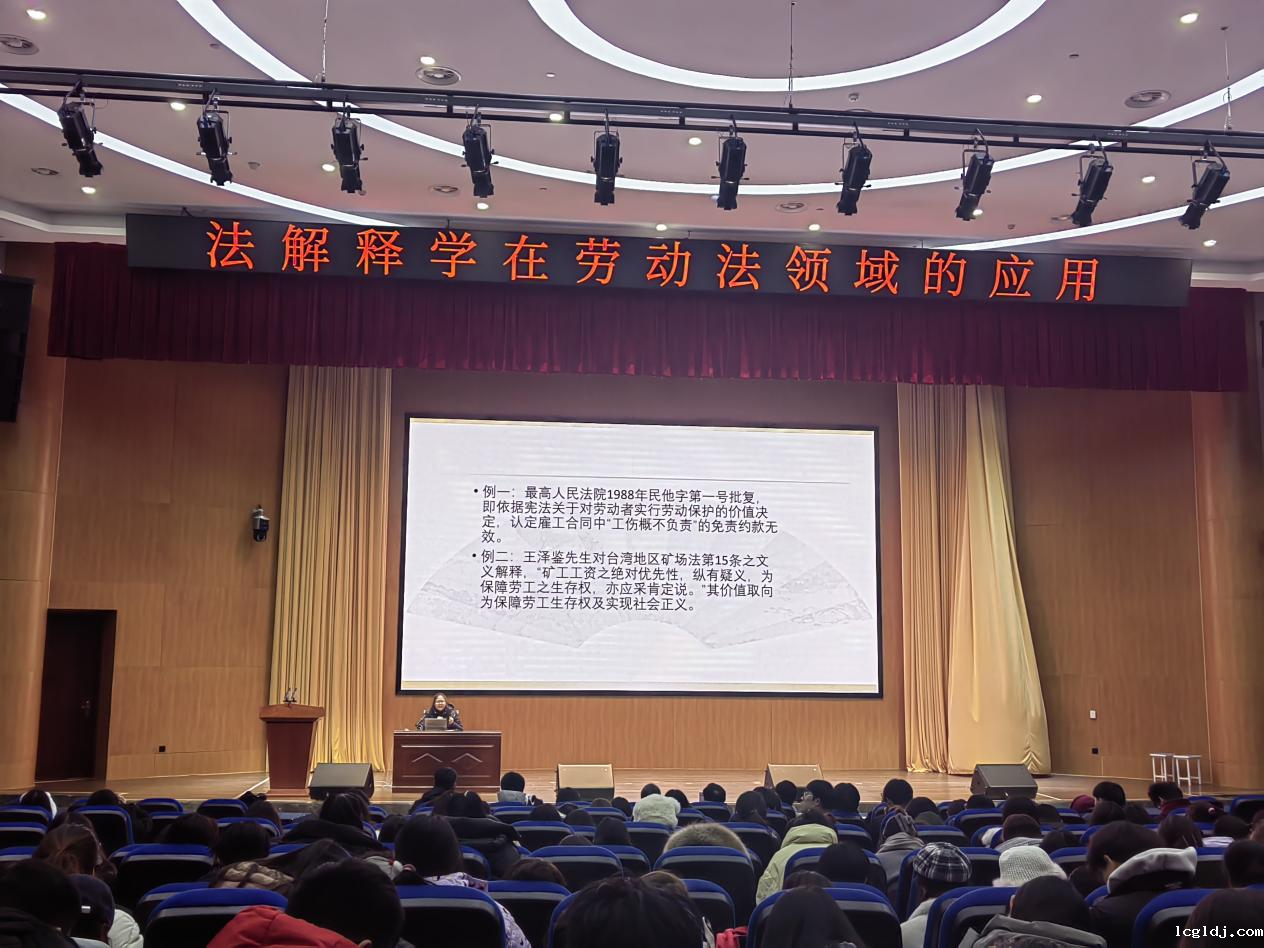 交流研讨结束后,韩桂君教授应邀在学校树人报告厅作题为“法解释学在劳动法领域的应用”专题学术报告。报告会由文化与法律学院和国际商务与旅游学院共同举办,学校法律事务专业和人力资源管理专业部分教师和学生代表聆听了报告。韩桂君从法律解释的重要性、特性等角度进行了深刻分析和解读,结合具体案例和法律条文对法解释方法进行阐述,传授大学生参与诊所实践需要重视和注意的九个方面问题。到场参加讲座的教师和学生纷纷表示受益匪浅,对法解释学在劳动法领域的应用有了更深刻的认识和理解。