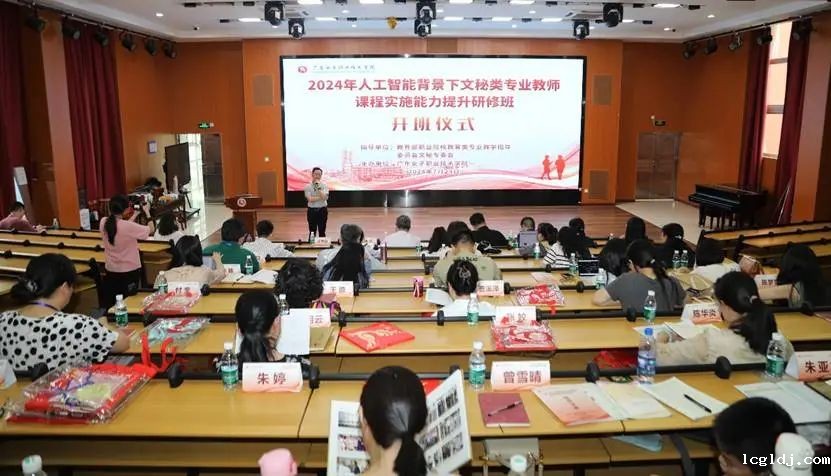 为积极应对人工智能时代带来的机遇与挑战,切实提升文秘类专业教师的课程实施能力,促进文秘专业的教育教学改革,7月24-27日,2024年人工智能背景下文秘类专业教师课程实施能力提升研修班在广东女子职业技术学院举办。本次研修班由教育部职业院校教育类专业教学指导委员会文秘专委会指导,广东女子职业技术学院管理学院承办,来自全国12个省(市、自治区)20所学校的35名从事文秘及其相关专业的教师汇聚本次研修班。教育部职业院校教育类专业教学指导委员会副主任、文秘专委会主任、伟德国际集团原校长李忠,广东女子职业技术学院副校级领导何文华出席开班仪式并发表讲话。我校文化与法律学院秦垒、章芹弟、邓玉蓉三位老师参加本次培训。