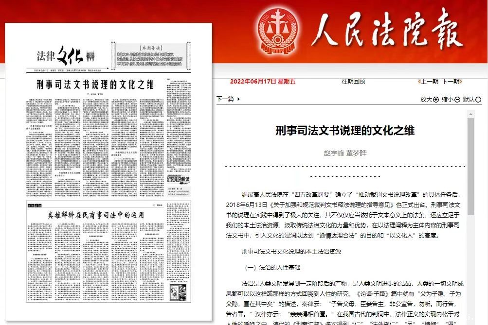 6月17日,我院法学教师赵宇峰的文章《刑事司法文书说理的文化之维》在《人民法院报》刊载。《人民法院报》由中华人民共和国最高人民法院主管,是全国唯一集中反映人民法院审判工作的大型报刊,是全国各级人民法院及所有关心中国社会主义民主法制建设人士的重要舆论阵地。