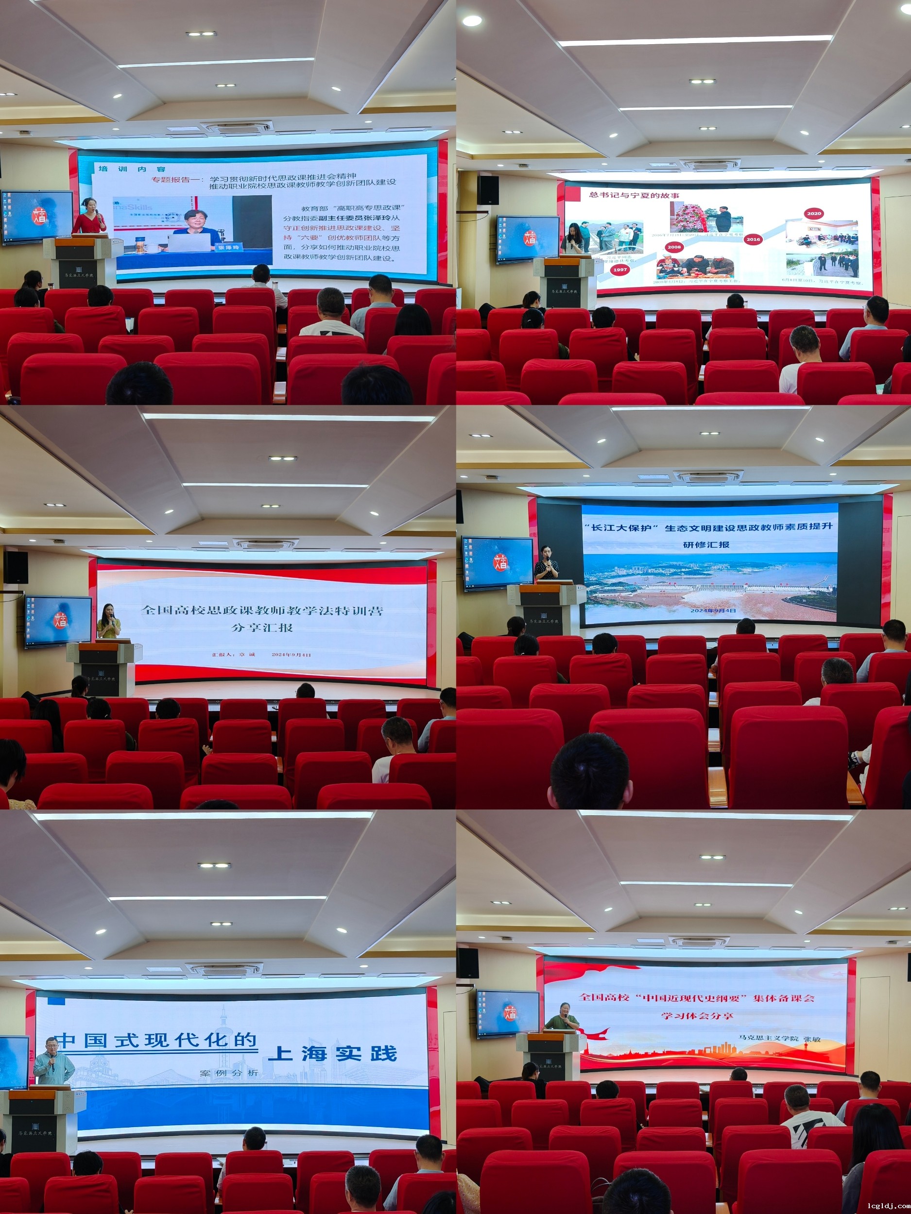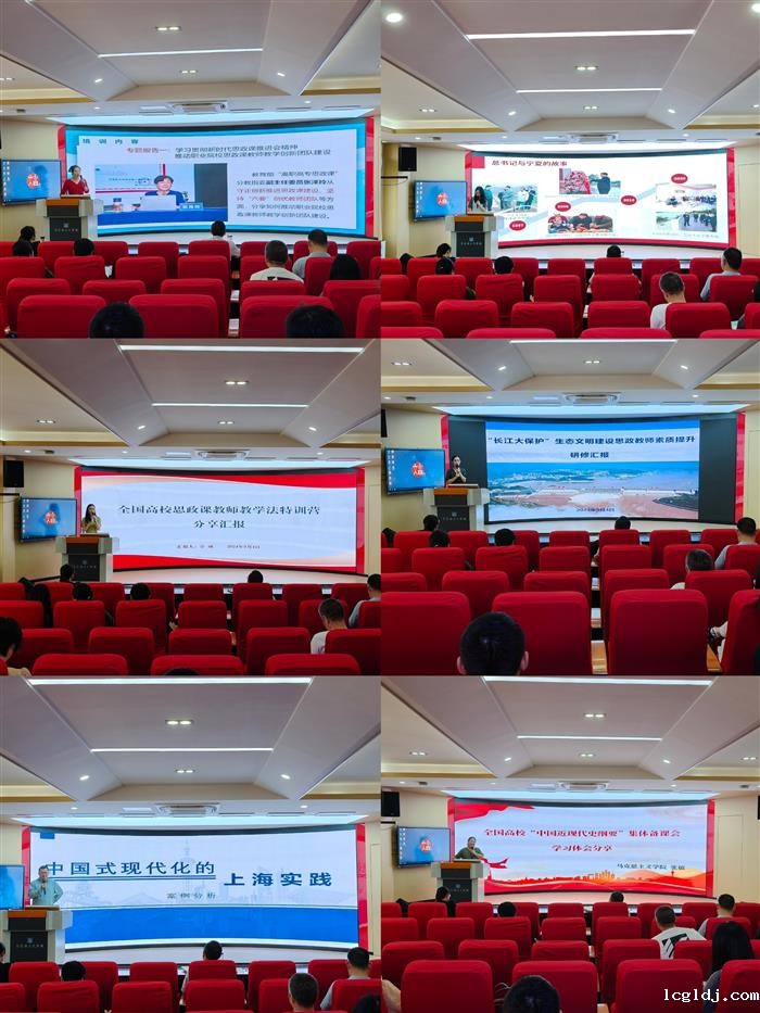 项子馨老师分享了参与第十期全国高职高专院校思政课骨干教师培训后的心得体会,她认为通过此次培训,更新了教学理念,拓展了教学视野,深刻认识到作为思政课教师自身肩负的责任感和使命感。杨淑蕊老师分享了暑期在宁夏的研修经历,向老师们生动展示了近年来宁夏回族自治区社会生活各方面的发展成就,并表示要将宁夏丰富的红色资源融入思政课教育教学中。章诚老师分享了参加全国高校思政课教师教学法特训营的收获体会,她表示通过特训营的学习进一步拓宽了教学视野,提升了教学能力。谢婧老师分享了参加“长江大保护”生态文明建设思政课教师素质提升研修班的经历,生动讲述了自己的学习体会和所见所闻。伍强老师分享了参加“中国式现代化的上海实践”研修班中的感悟与体会,此次研修使他更加深入地理解了中国式现代化的核心要义,目睹了上海在推进中国式现代化进程中的创新举措。最后,张敏老师分享了参加全国高校“中国近现代史纲要”集体备课会后的心得体会,表示通过集体备课会的学习,要切实把培训文本转化为课堂内容,不断充实思政课教学。