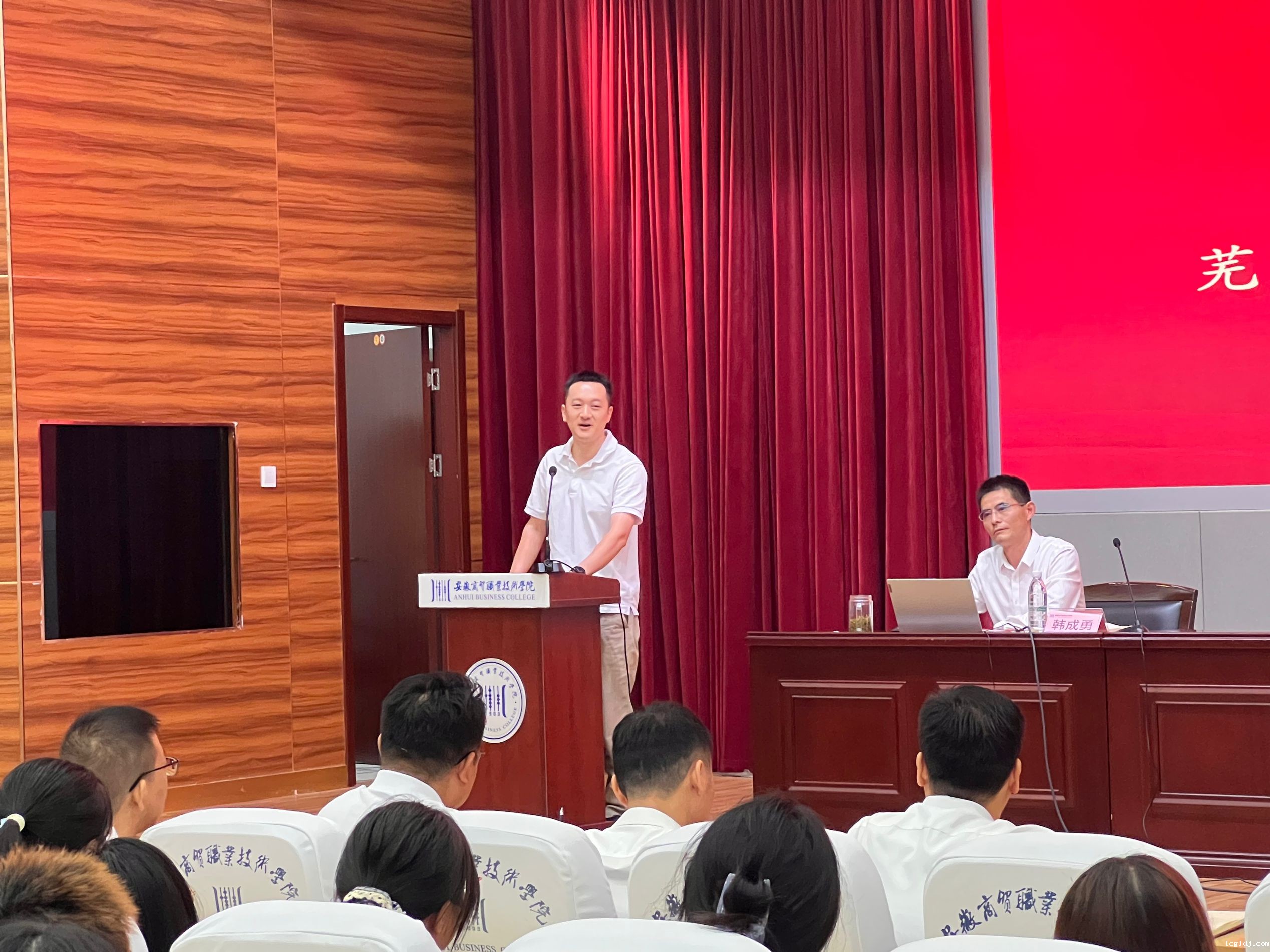 人力资源管理教研室主任赵根良从专业概况、师资力量、培养目标、专业亮点、课程安排、就业前景、实习实践等方面进行了详细的专业介绍,同时激励同学们学好专业知识,积极参加各类竞赛活动,全方位提升自我。