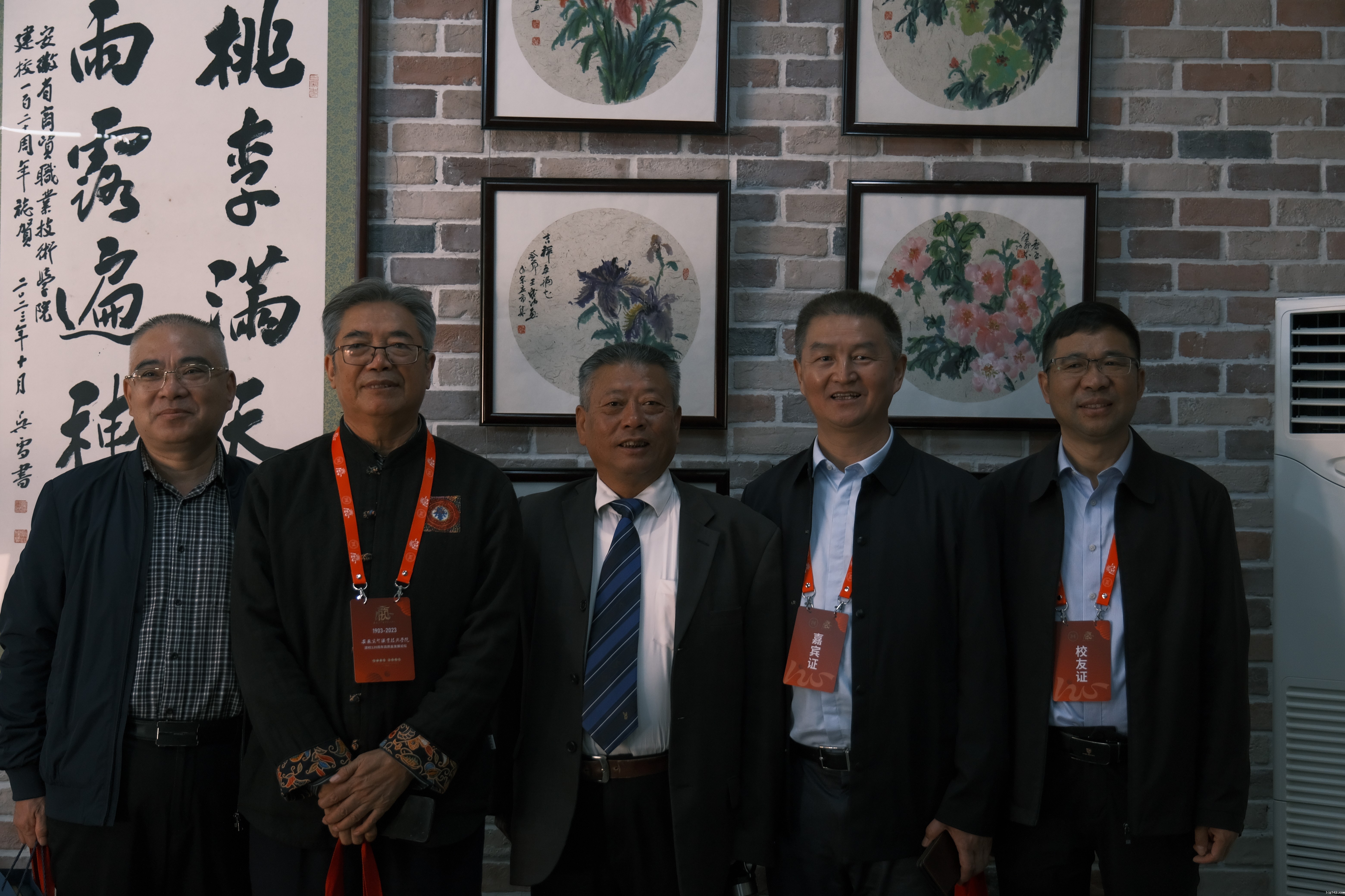 师生校友书画展的策划自今年8月开始,图书馆联合团委举办百廿校庆书画作品征集活动,活动收集到来自商贸师生、离退休老同志、广大校友百余幅优秀作品,图书馆邀请专业教师从中精选了29幅书画作品,其中既有出自93岁高寿的老校长邵明浩老先生亲笔手书,也有计统841班校友邀请安徽省书法家协会主席吴雪和中国书法家协会会员、安徽省书协刻字委员会副主任董宜夫为母校120周年华诞题写的三幅书法作品。既有83物价班校友、中山画院原院长王成功的花卉国画《春日八图》,也有1998届校友陈松一笔一划篆刻的印屏,以及校友黄正奇和汪求来以魏碑和隶书书写的校歌校训。书香墨韵,美不胜收,不同的韵味,一样的深情。