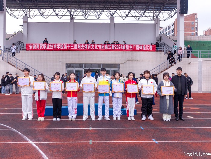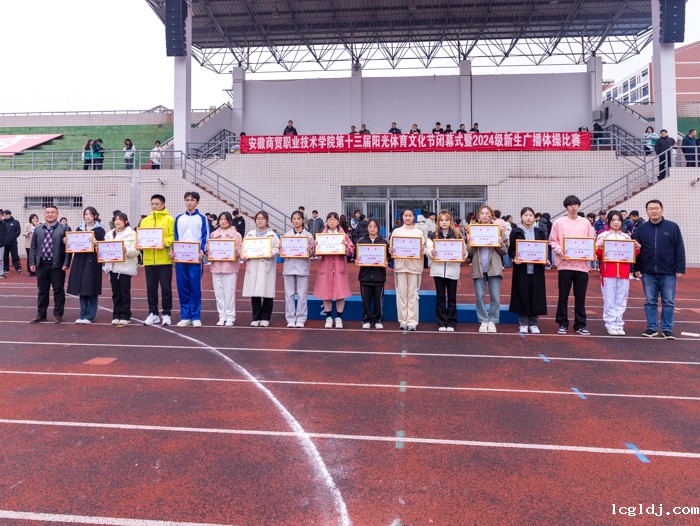 大会宣读了2024年度“商贸杯”学生体育比赛获奖成绩,校领导、相关部门负责人现场为获奖集体颁奖。